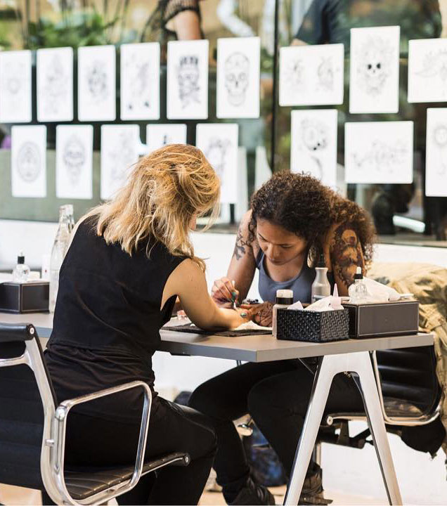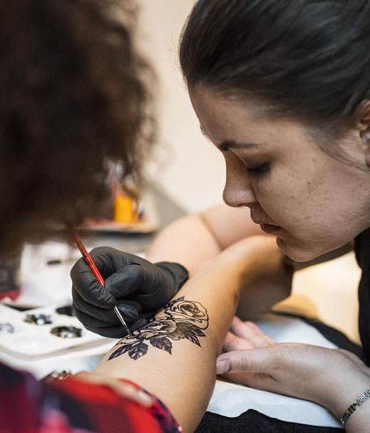 Inspirations tribales, old school, graphiques ou contemporaines… Nos artistes, maîtres du trait et de la couleur, subliment chaque détail avec finesse et précision. À l’aérographe, à l’encre, au décalco ou à l’aide de poudres scintillantes, ils révèlent votre personnalité à travers des créations élégantes et sur-mesure.